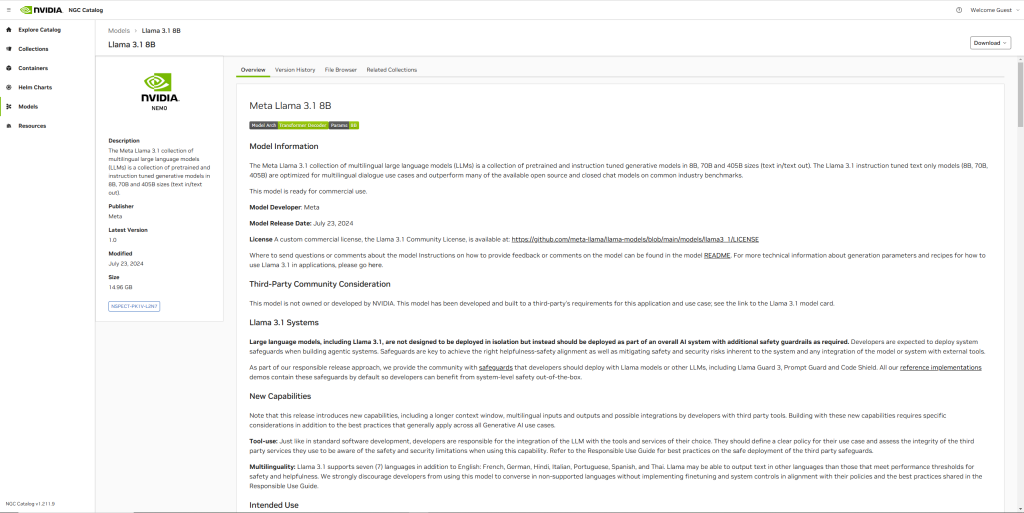 Figure 1. NVIDIA NGC Catalog’ta yer alan bir model kart örneği